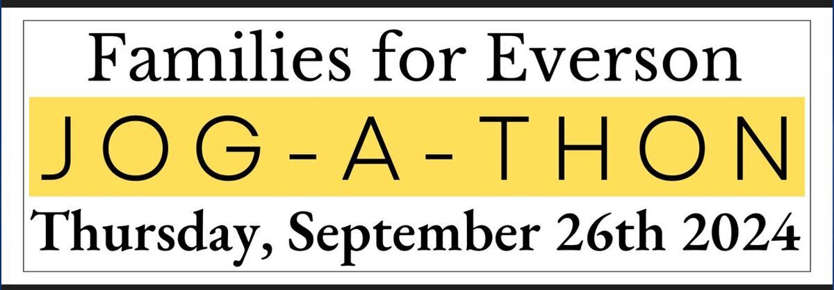 The Families for Everson Jog-A-Thon will be held this week on THURSDAY.  Jog-a-thon fundraising envelope and a volunteer sign up forms were sent home last week. The details about the jog-a-thon and fundraising information are listed on the envelope. Exciting this year is a new VENMO donation option!  Please return the envelope with any money raised in your child’s backpack the day of the jog-a-thon, Thursday September 26.