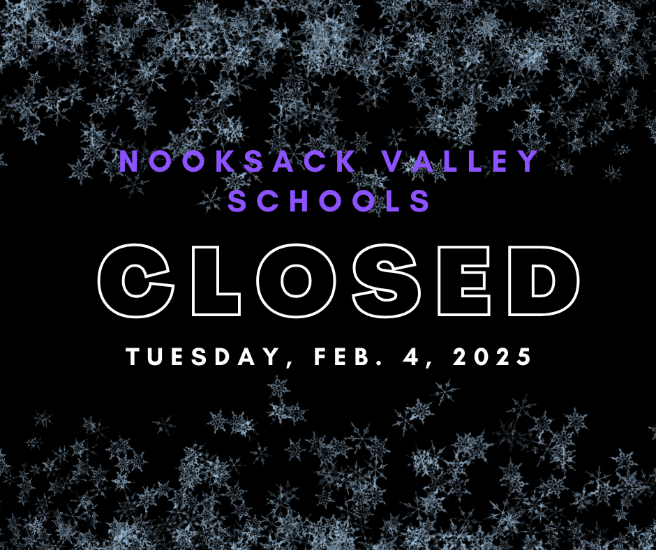 Due to continued drifting snow and frigid wind chills, all Nooksack Valley Schools and programs are closed on Tuesday, Feb. 4.